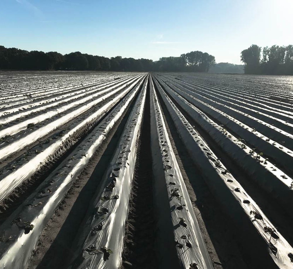 Unkraut kann keimen, wird aber automatisch verbrannt, durch die auf die Folie scheinende Sonne. Dadurch sind keine Unkrautvernichtungsmittel mehr notwendig. - Weniger Schimmelentwicklung